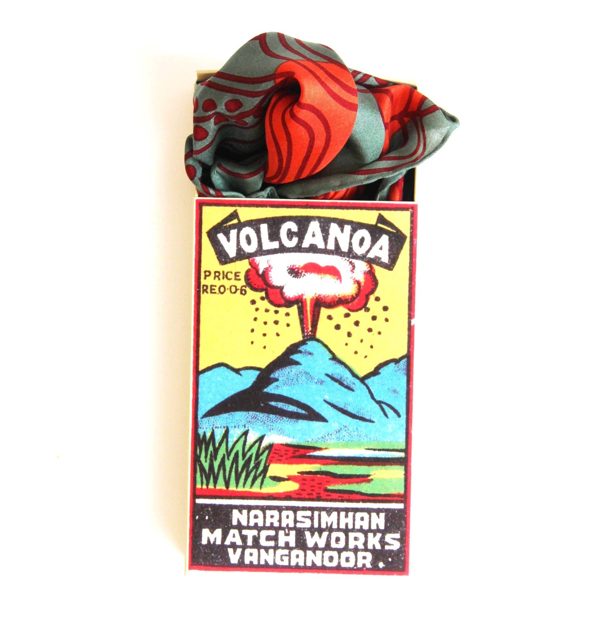 These cute and versatile scarves can be worn around the neck, around the wrist, as a headband, in a bun or even around a bag strap... They are drawn by hand in France and printed by hand in India. They have an exceptional finish with a hand-rolled hem. Sold in a box inspired by vintage matchboxes. 100% silk 50 x 50 cm